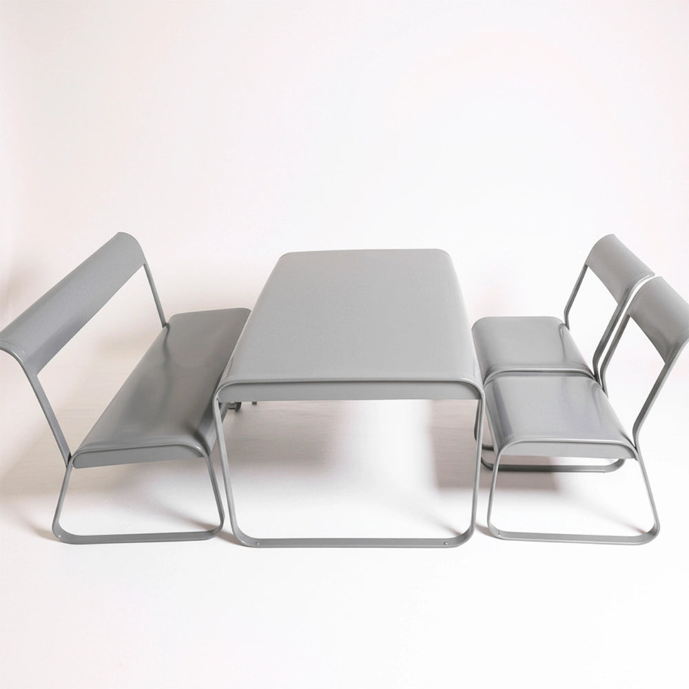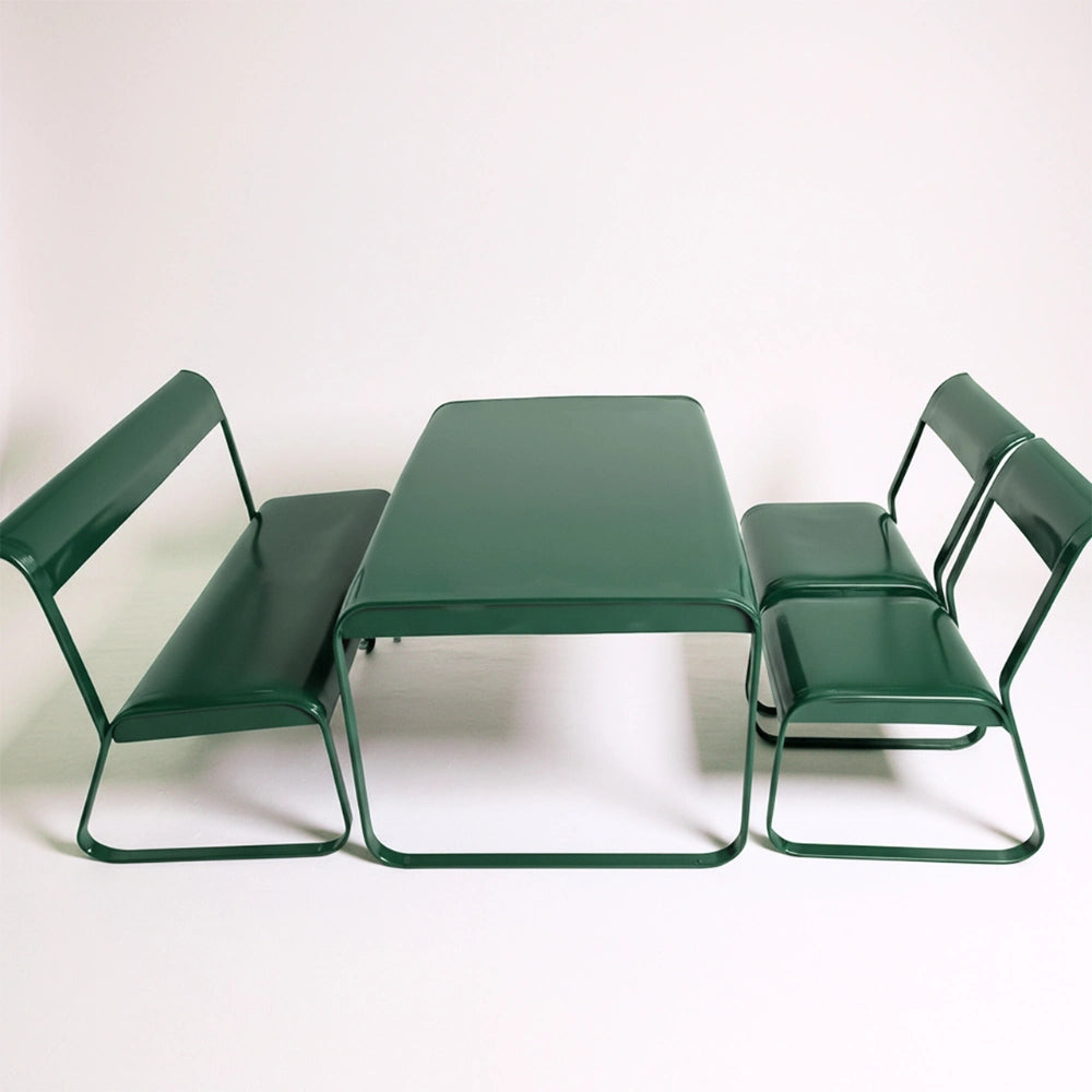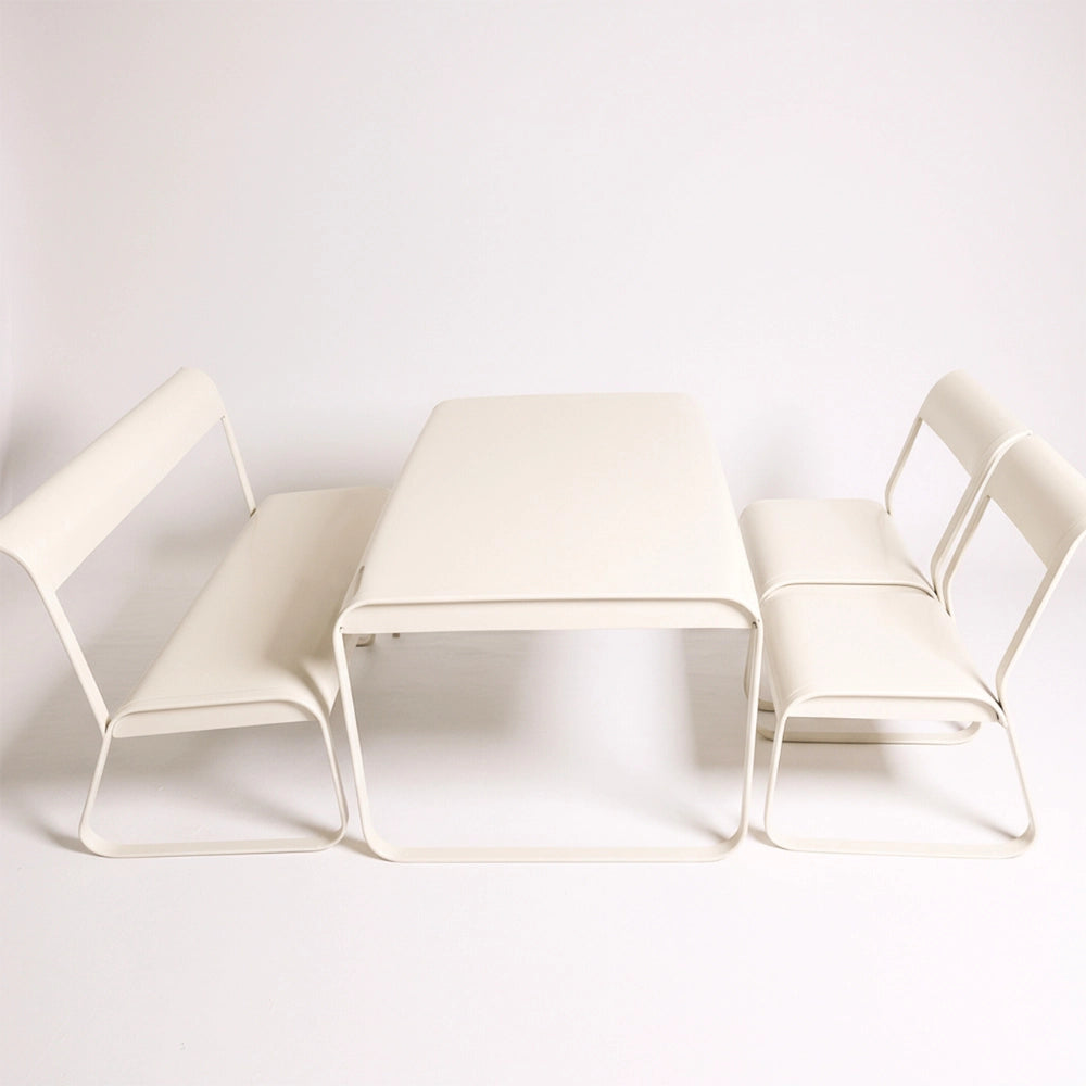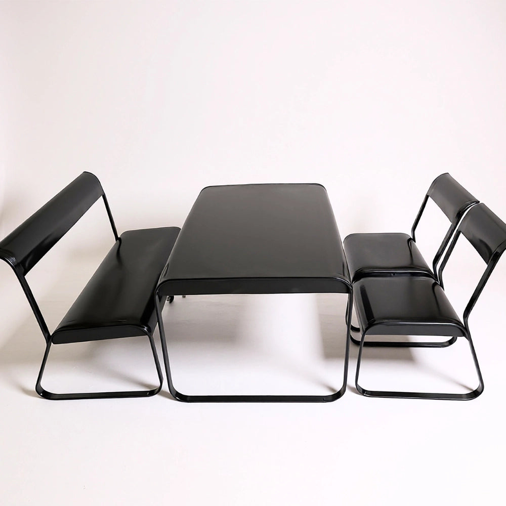 The Drova Set brings bold, modern design to any space with its fully metal construction and smooth, continuous curves. Built from durable powder-coated steel, every piece is sturdy, easy to clean, and resistant to daily wear. The rounded edges and bent-metal structure create a comfortable seating experience without the need for cushions, while the open-frame silhouette keeps the look light and contemporary.