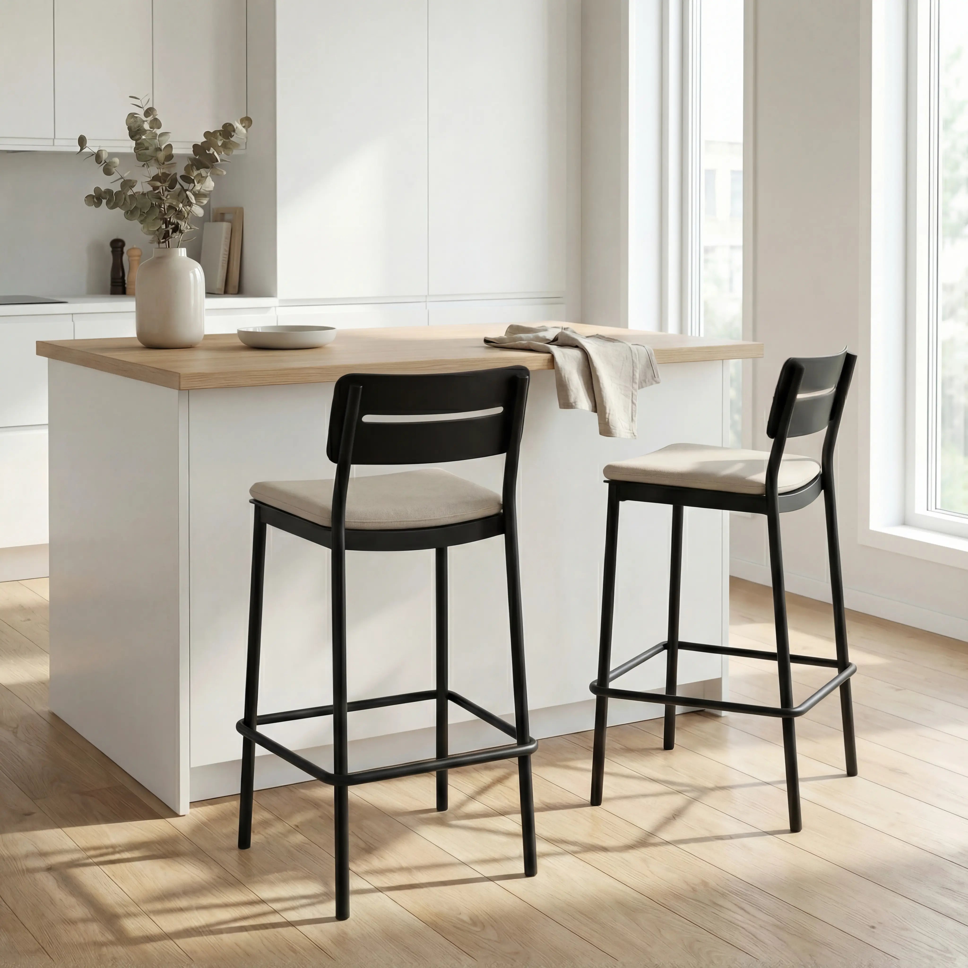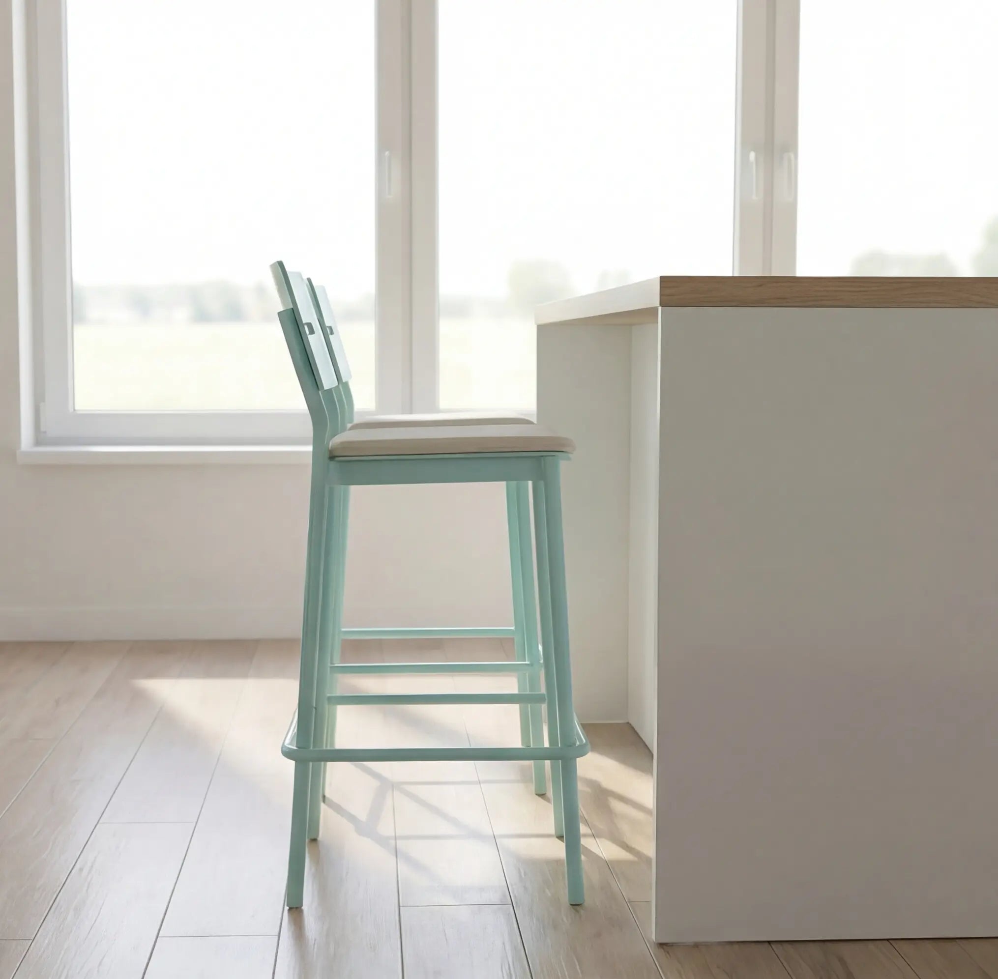 Its gently shaped seat and supportive backrest offer relaxed comfort while maintaining a sleek, minimal look. The open, airy design keeps the chair visually light, making it ideal for kitchen islands, bar counters, or high dining spaces.