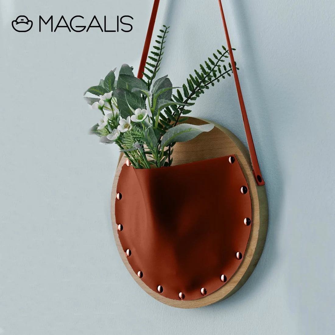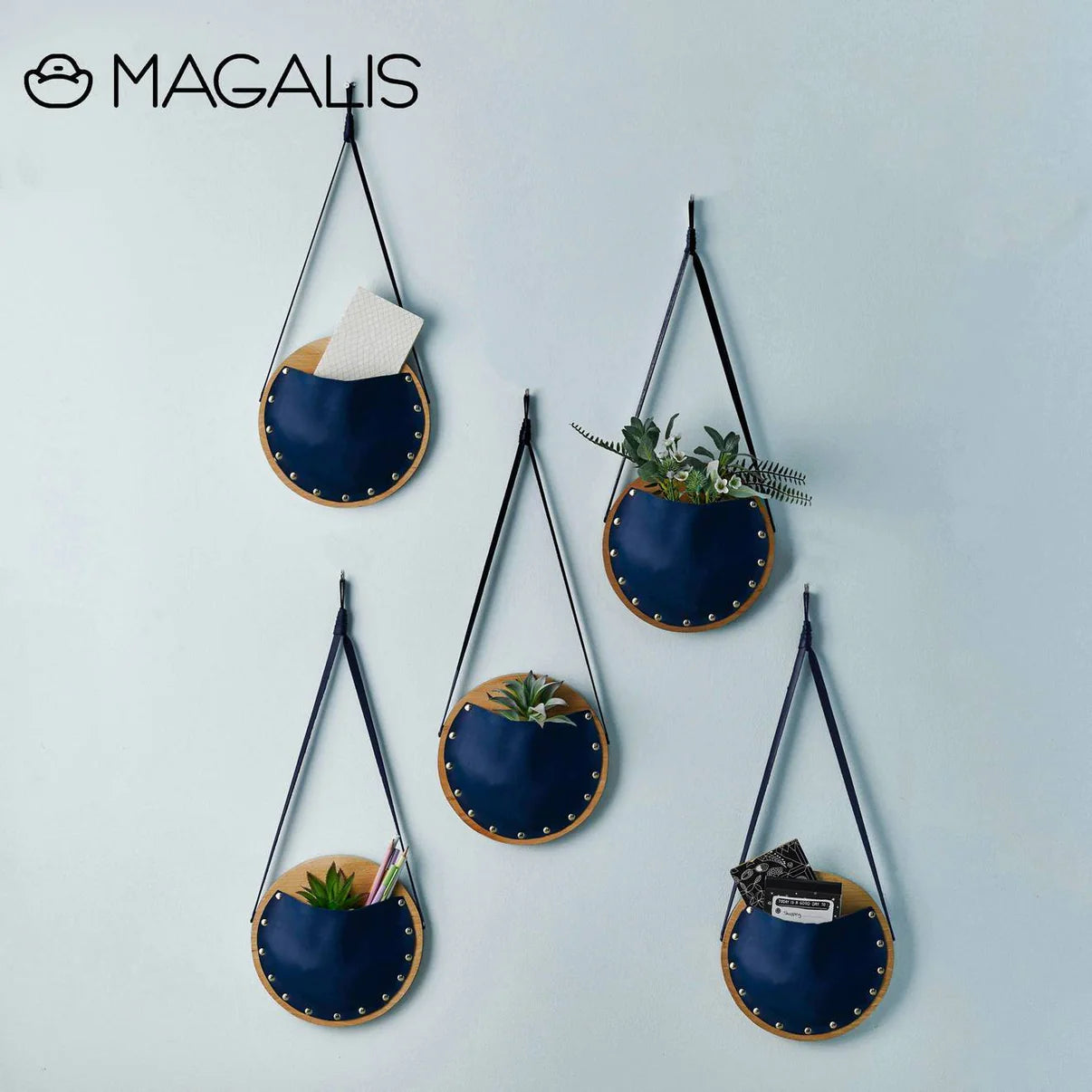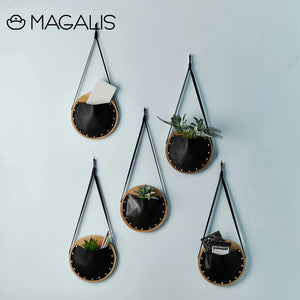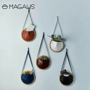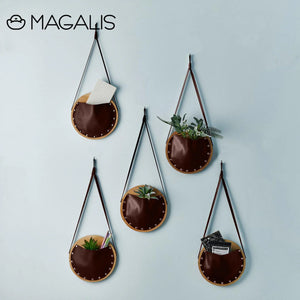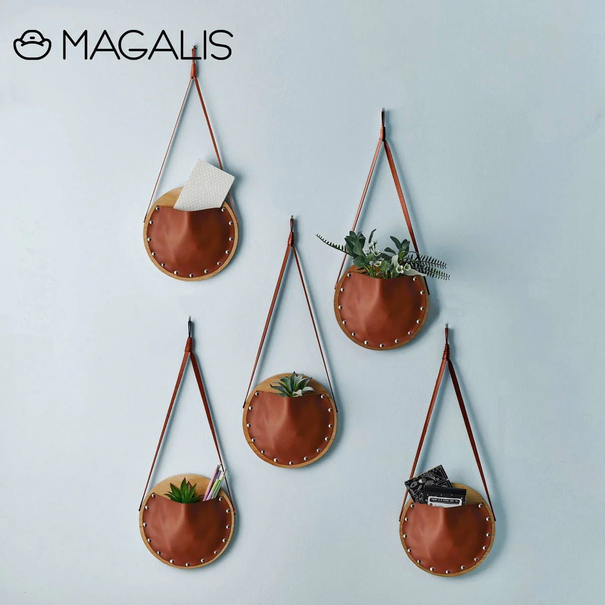 يمكنك اضافة لمسة ديكور مختلفة على جدران منزلك بحامل الزهور المصنوع يدويا. يتميز حامل الزهور الخاص بنا بأنه مصنوع من ظهر خشبى, حبل جلدى للتعليق و جيب من الجلد عالى الجودة لوضع مستلزماتك بها. يضيف لمسة جمالية للديكور في المنزل يمكنك اختيار الطقم من خمسة الوان مختلفة او متشابها.