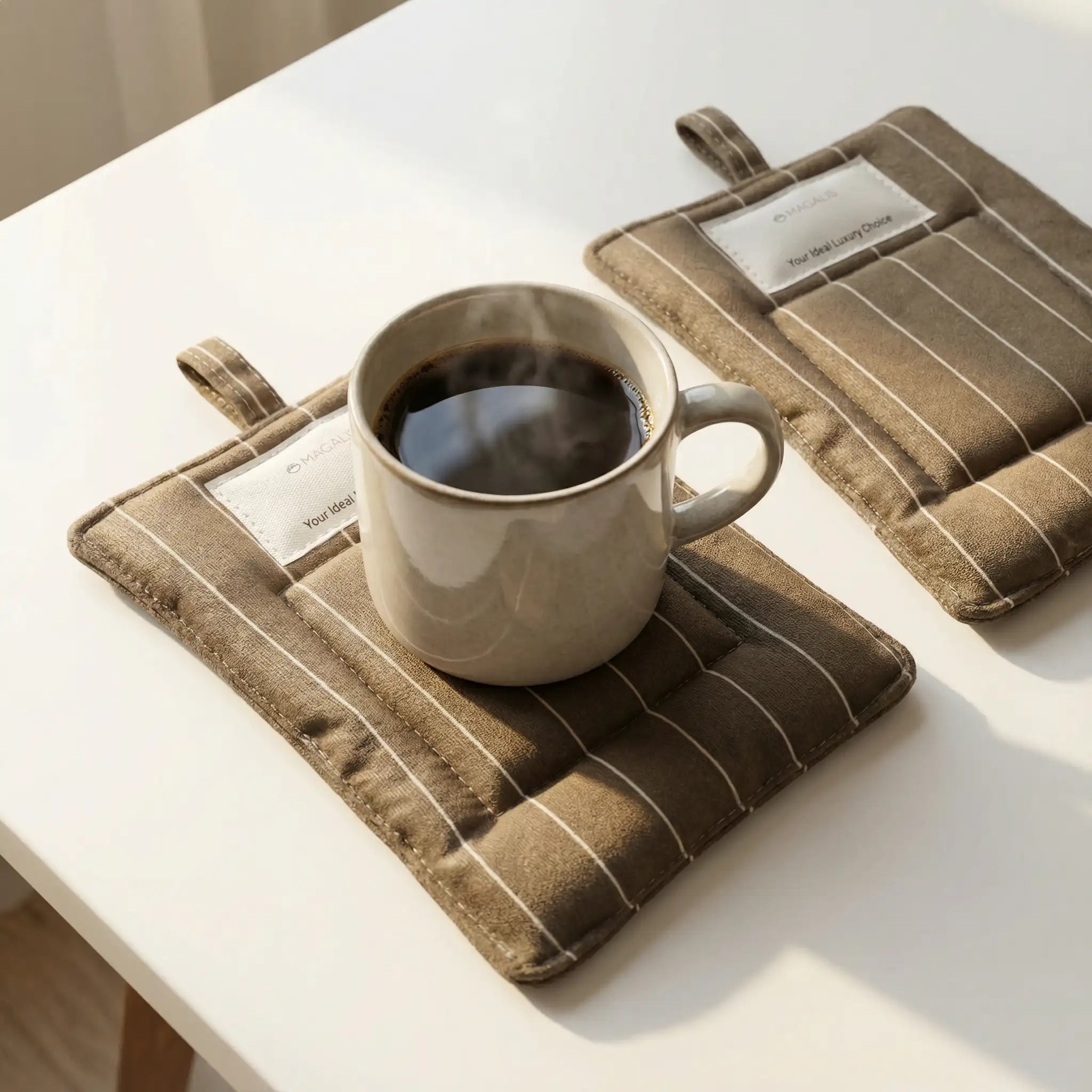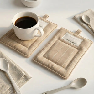 The Fiora Pads Set is designed to keep your surfaces safe while adding a warm, minimal aesthetic to your home. Made from high-quality woven fabric with a soft padded inner layer, each pad absorbs moisture, resists heat, and protects your table from scratches and daily wear.