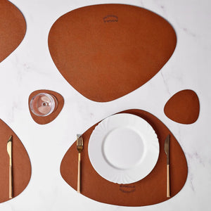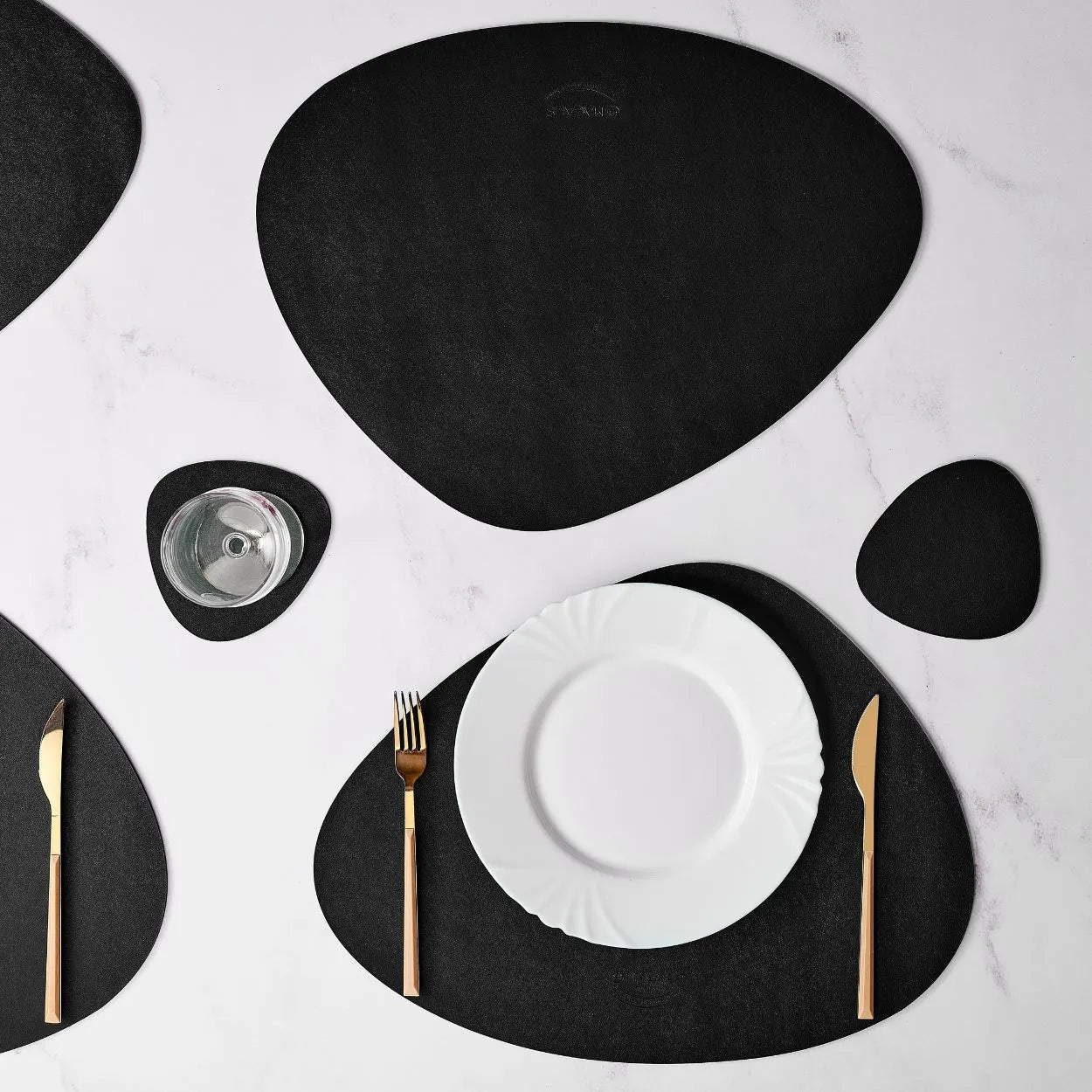 غير شكل طاولتك بمفرش الأطباق الجلد الأنيق وقواعد الاكواب الخاصة به. ستكون اللمسة النهائية المثالية لمائدة طعامك لأنها مصنوعة من الجلد الصناعي الذي يجعلها أكثر متانة وسهلة التنظيف وتحمي طاولتك بشكل فعال من اي خدوش.