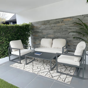 يجمع طقم اريفا بين التصميم العصري الأنيق والأداء العملي طويل الأمد. يتميز بهيكل مصنوع من الألمنيوم المقاوم للصدأ، خفيف الوزن، متين، ومصمم لتحمّل مختلف الظروف الجوية. تأتي وسائد الجلوس بحشوة إسفنجية عالية الكثافة لتوفير أقصى درجات الراحة، بينما تأتي وسائد الظهر محشوة بالفيبر الناعم لدعم مريح. سواء تم وضعه في الحديقة، التراس، أو السطح، يضيف اريفا لمسة من الأناقة والوظيفة لأي مساحة خارجية.