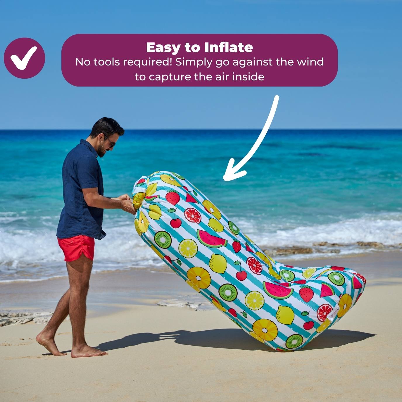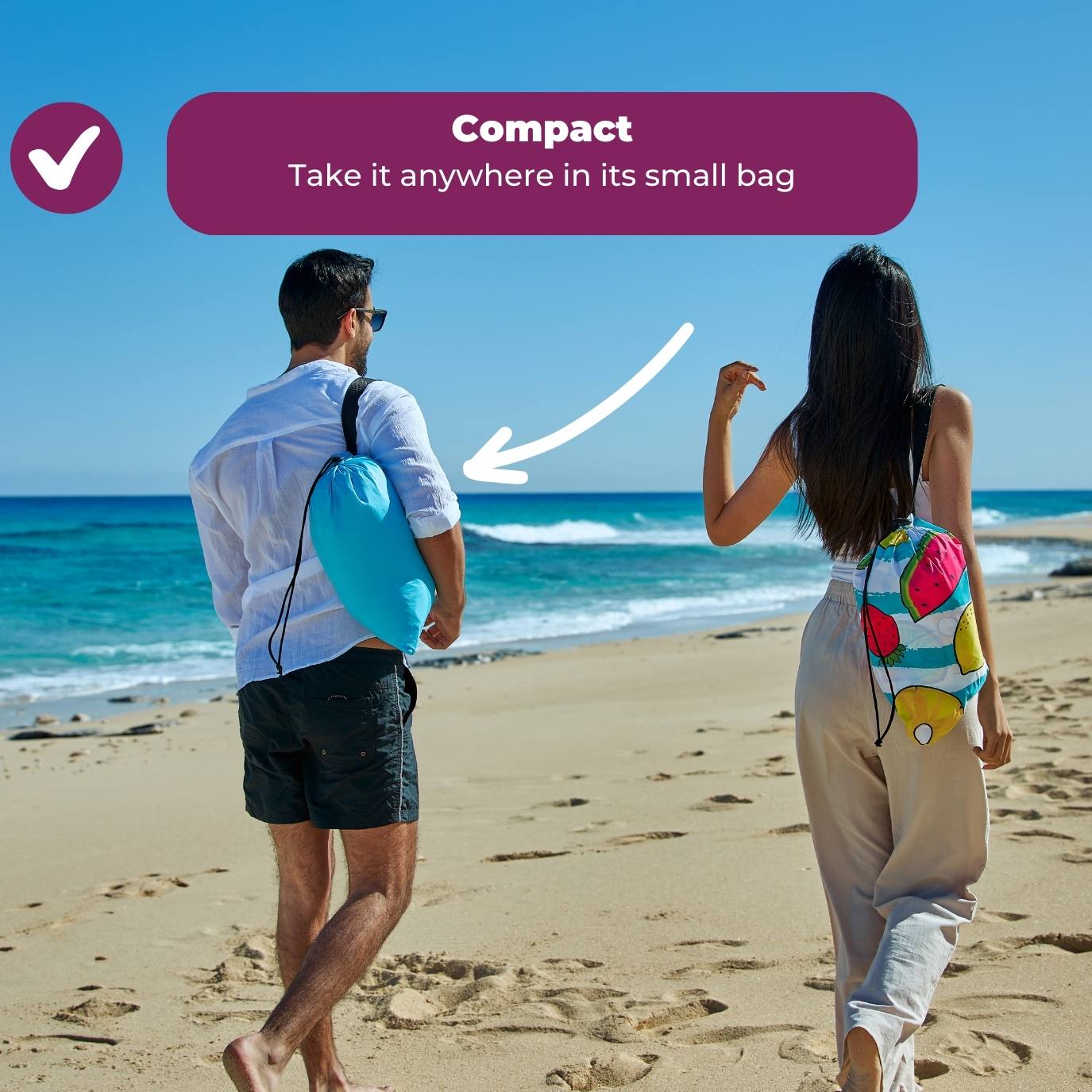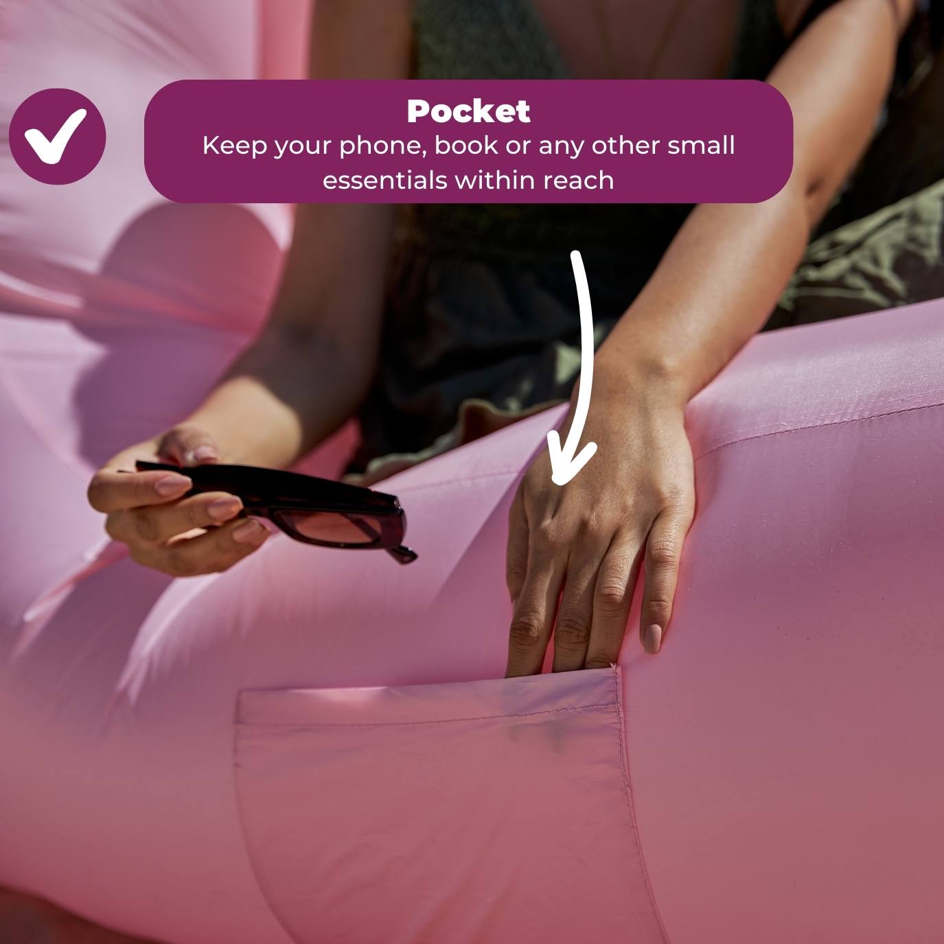 ٥ . استمتع بوقتك على الكرسي الهوائي وعند الانتهاء، ما عليك سوى فتح المشبك والضغط عليه لإفراغ الهواء. بمجرد أن تصبح فارغة بالكامل، اطوِها واحفظها مرة أخرى في الحقيبة الصغيرة لتخزينها بسهولة ودون أي مشاكل.