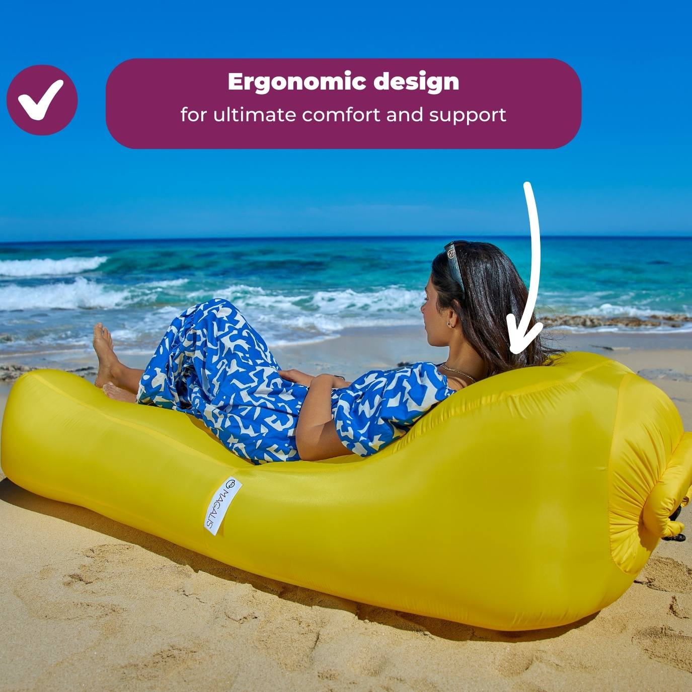 ودّعوا الجلوس الغير مريح واستقبلوا الرّاحة الفائقة مع الكرسي القابل للنفخ. صُمّم من اجل راحتكم، يتميّز بمنطقة جلوس شبكية وتصميم مريح لتجربة جلوس مثالية. لا يحتاج إلى أدوات أو مضخة، فقط قوموا بنفخه بمجرد الذهاب ضدّ الرياح واستمتعوا! مصنوع من خامات عالية الجودة مقاومة للماء، فهو مثالي لجميع مغامراتكم في الهواء الطلق، من الجلوس بجانب حمام السباحة إلى رحلات الشاطئ وأكثر من ذلك. وعندما تنتهوا، يسهل إخراج الهواء من الكرسي وتخزينه في حقيبة صغيرة، مما يجعله عملي ومريح في التنقل. استرخوا بأناقة وراحة مع الكرسي الجديد !