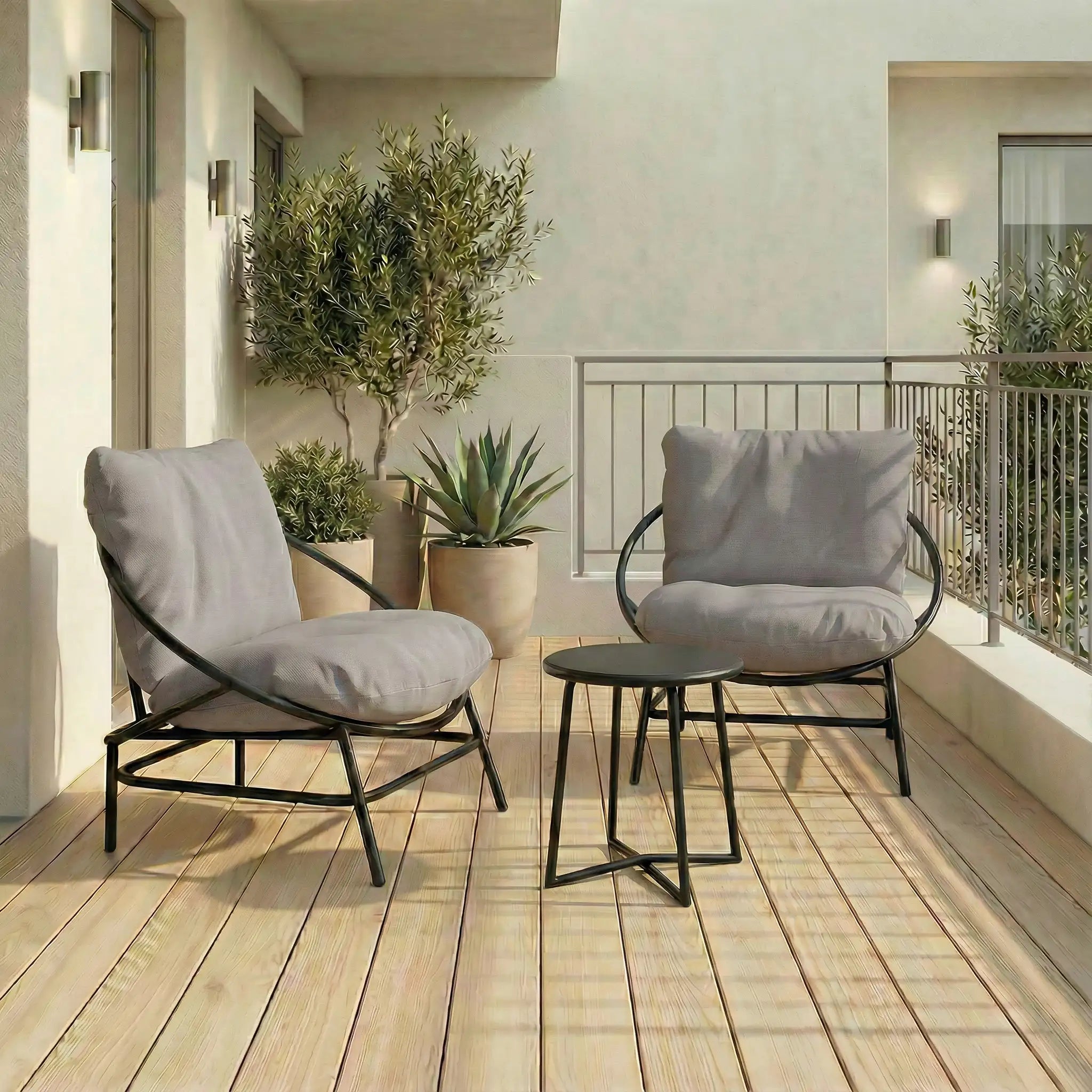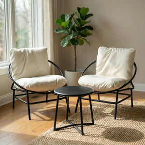 Simple, stylish, and built to last — the Liora Set is perfect for outdoor relaxation or indoor lounging. It includes two cushioned armchairs and a round table, all supported by a sleek, rust-resistant aluminium frame. The curved design adds a modern touch, while the soft cushions ensure everyday comfort. Ideal for patios, balconies, or cozy corners, Liora brings comfort and style wherever it goes.
