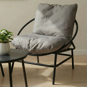 Its gently curved silhouette creates a modern, inviting look, while the generously cushioned seat offers a comfortable place to unwind. The fiber-filled cushions are wrapped in waterproof fabric, making the chair as practical as it is comfortable — perfect for daily use, indoors or out.