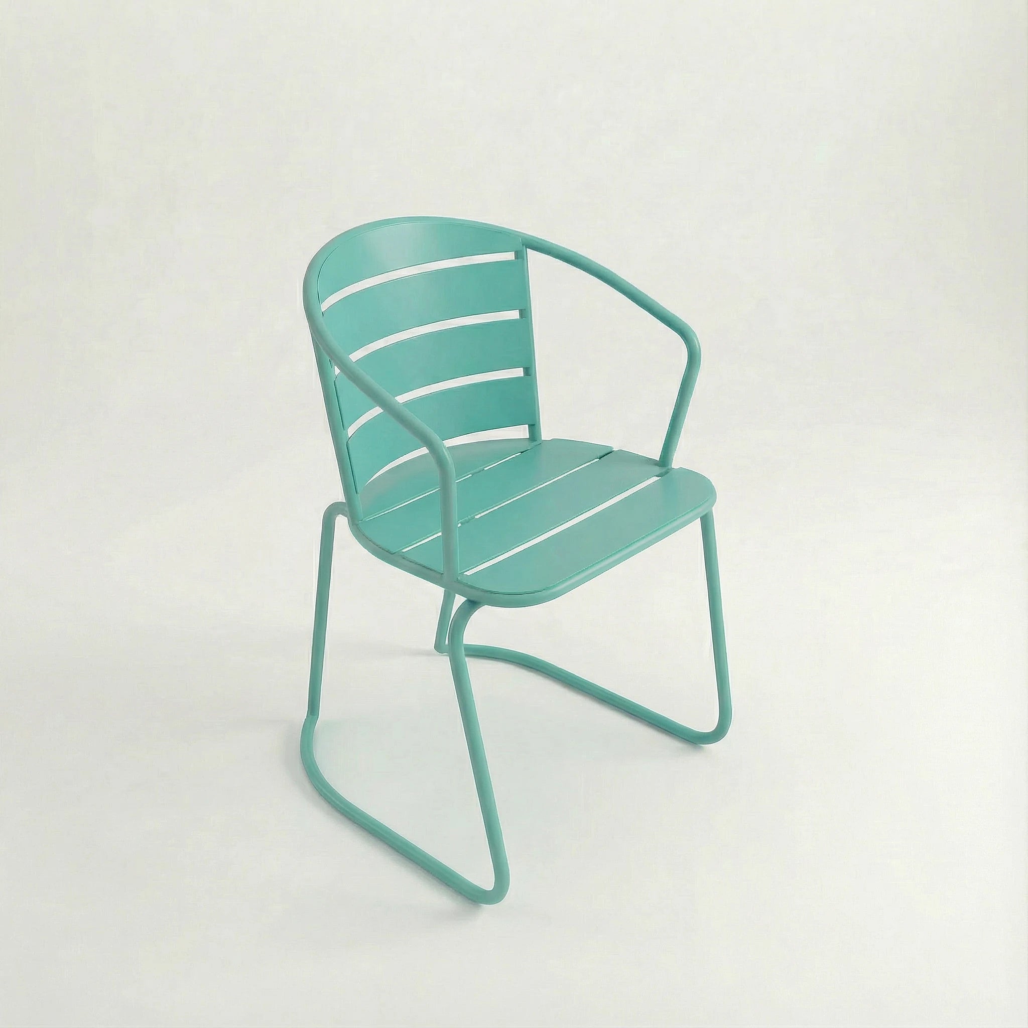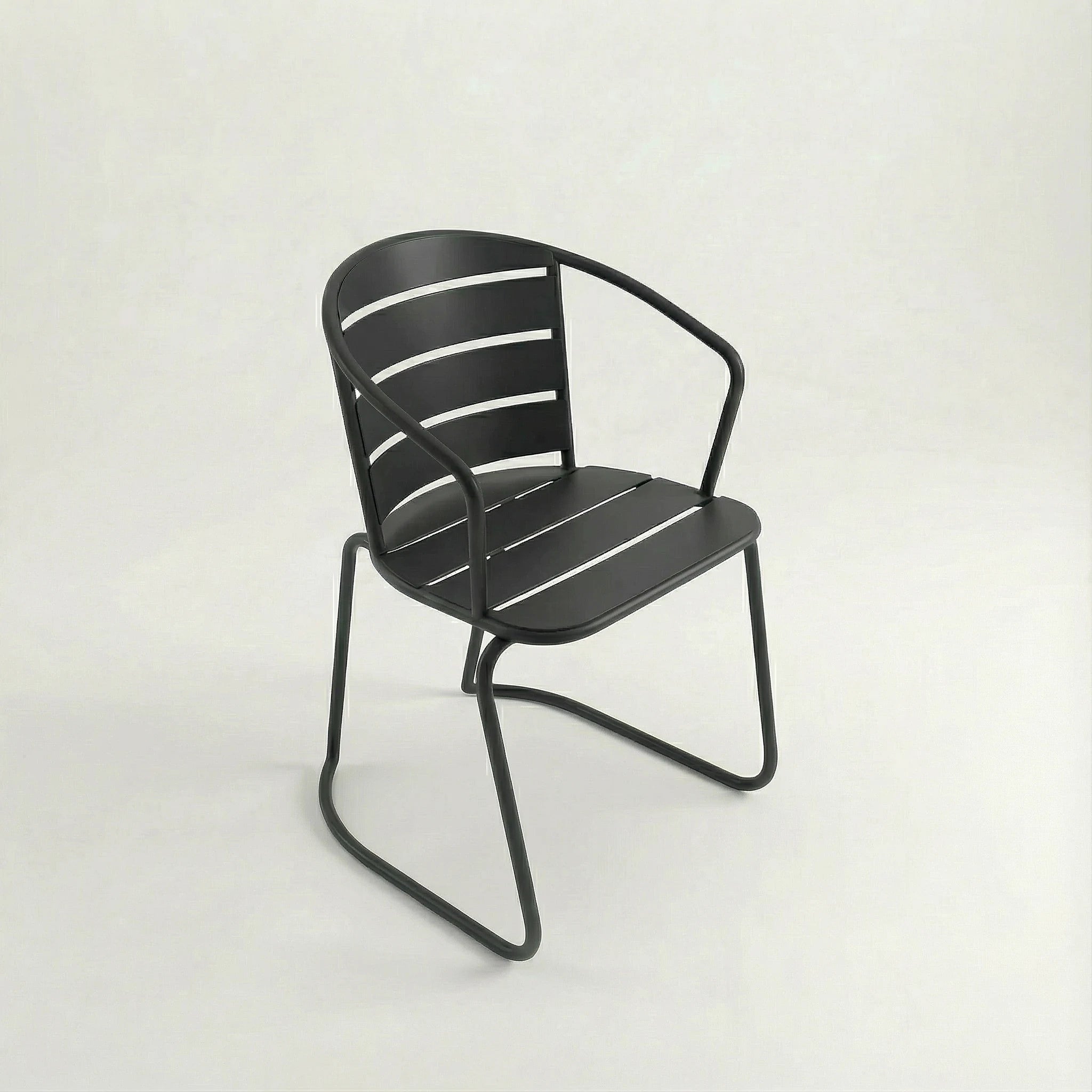 Its gently contoured backrest and seamless arm design provide comfortable support while maintaining a sleek, minimal look. The solid back structure gives a sense of stability and structure, making it perfect for relaxed dining, coffee moments, or casual outdoor seating.