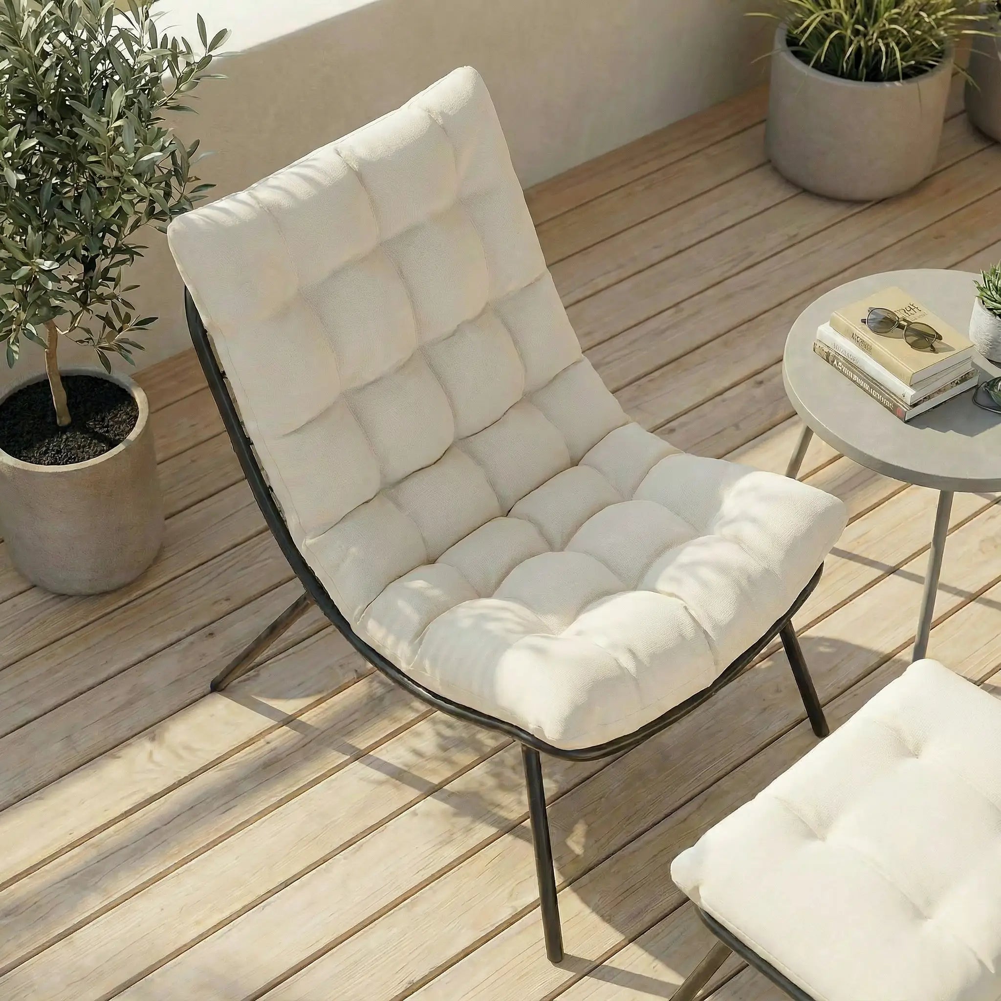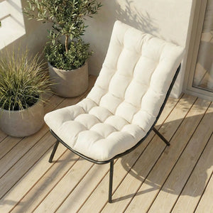 Its soft, generously padded seat creates a relaxed lounging experience, while the open, airy frame gives the chair a light and elegant presence. The fiber-filled cushioning gently supports your body, making every sit feel natural and effortless.