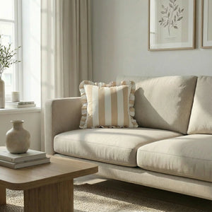The Solva Cushion adds a fresh, relaxed character to your living space with its timeless striped design and soft ruffled edges. Designed to bring balance between comfort and visual charm, it works beautifully on sofas, armchairs, beds, or reading corners.